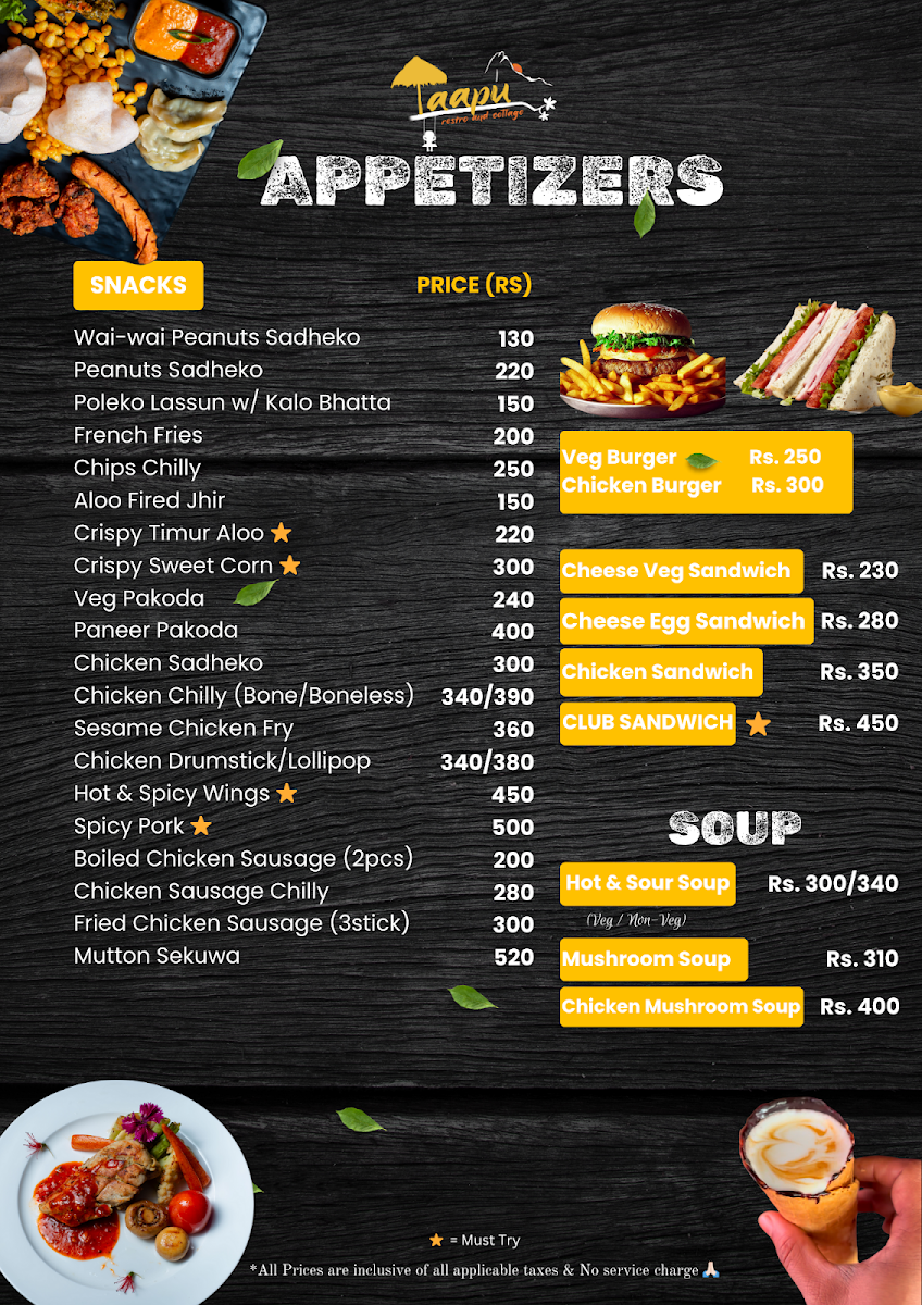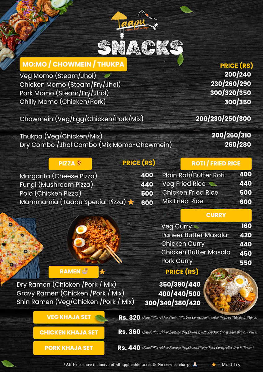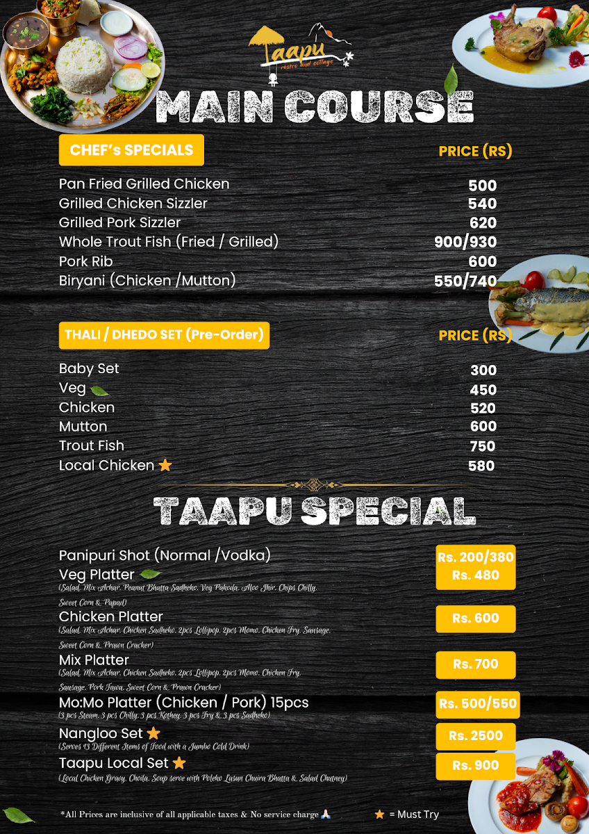 Taapu Restro & Cottage Menu