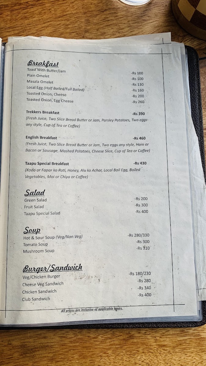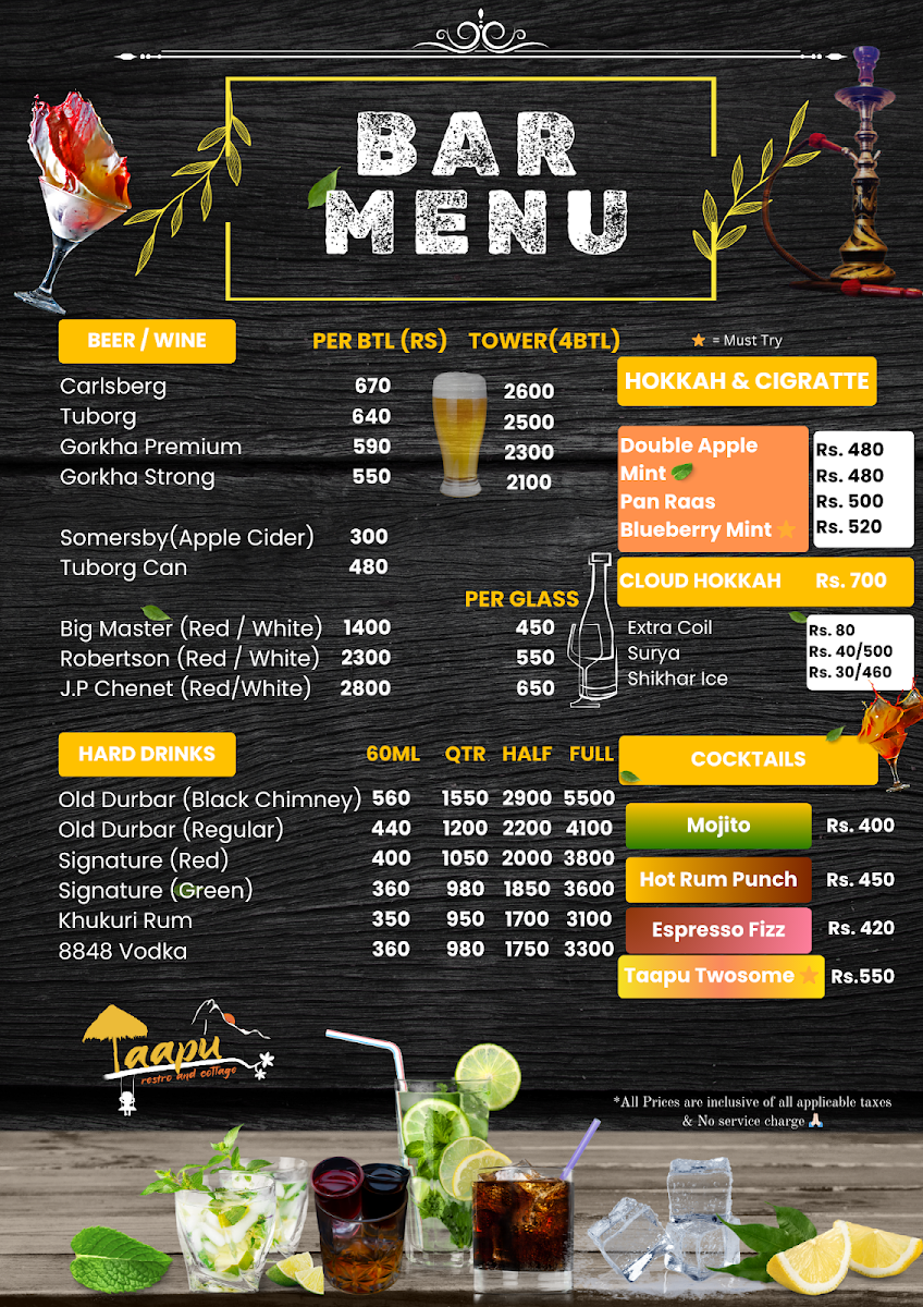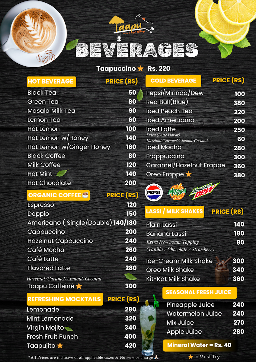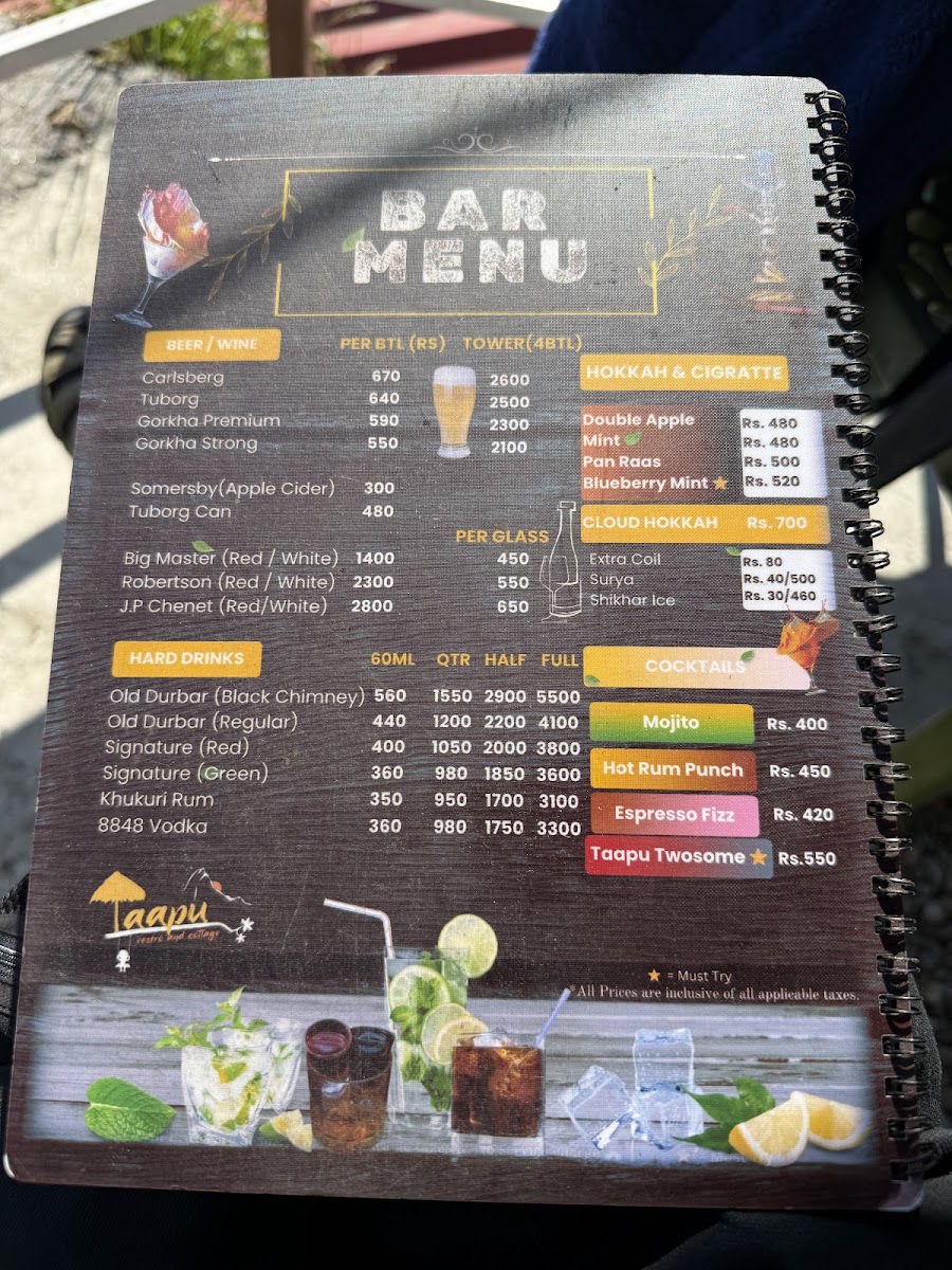 Taapu Restro & Cottage Menu